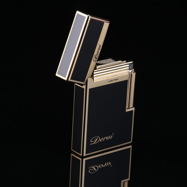 - ( Chính Hãng ) Bật Lửa Gas Đá Hàng Cao Cấp DERUI Nguyên Khối Màu Đen Viền Vàng